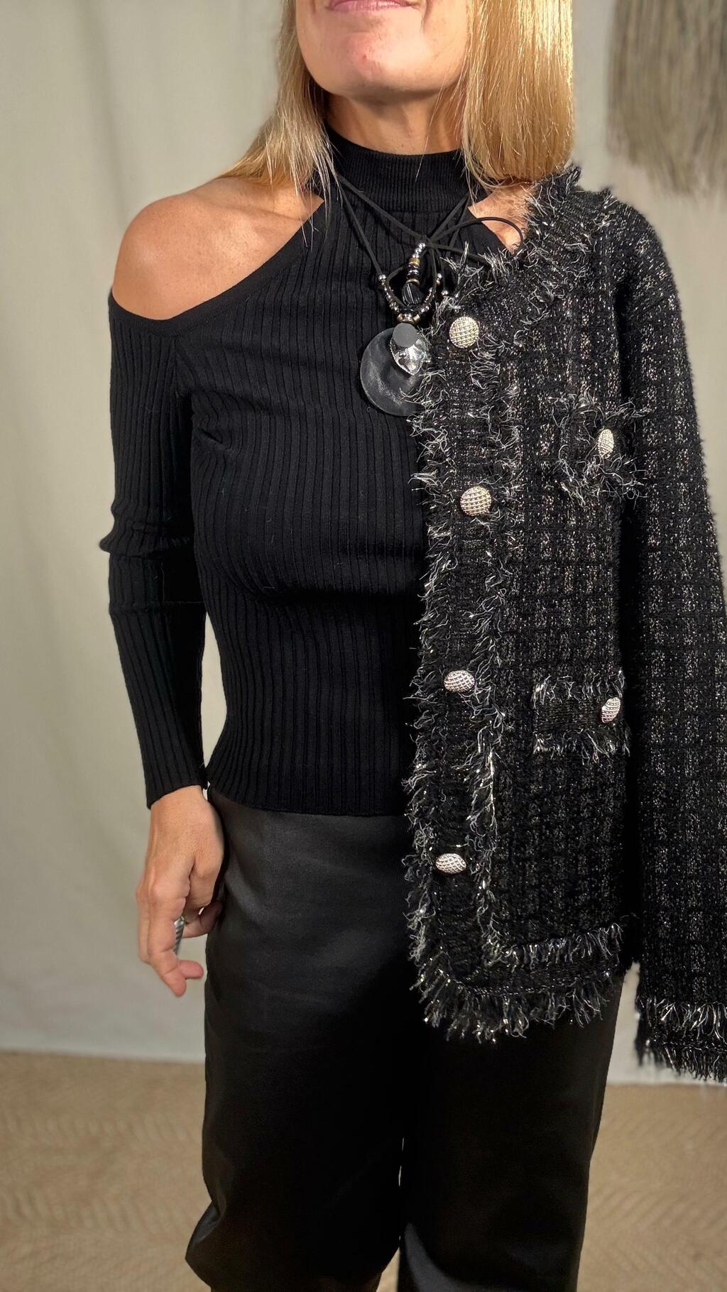 ¡Descubrí el sweater tejido de cachemire con cuello y hombros descubiertos que transformará tu guardarropa! Este diseño exclusivo es la combinación perfecta de modernidad y elegancia, ideal para realzar tu estilo en cualquier ocasión.